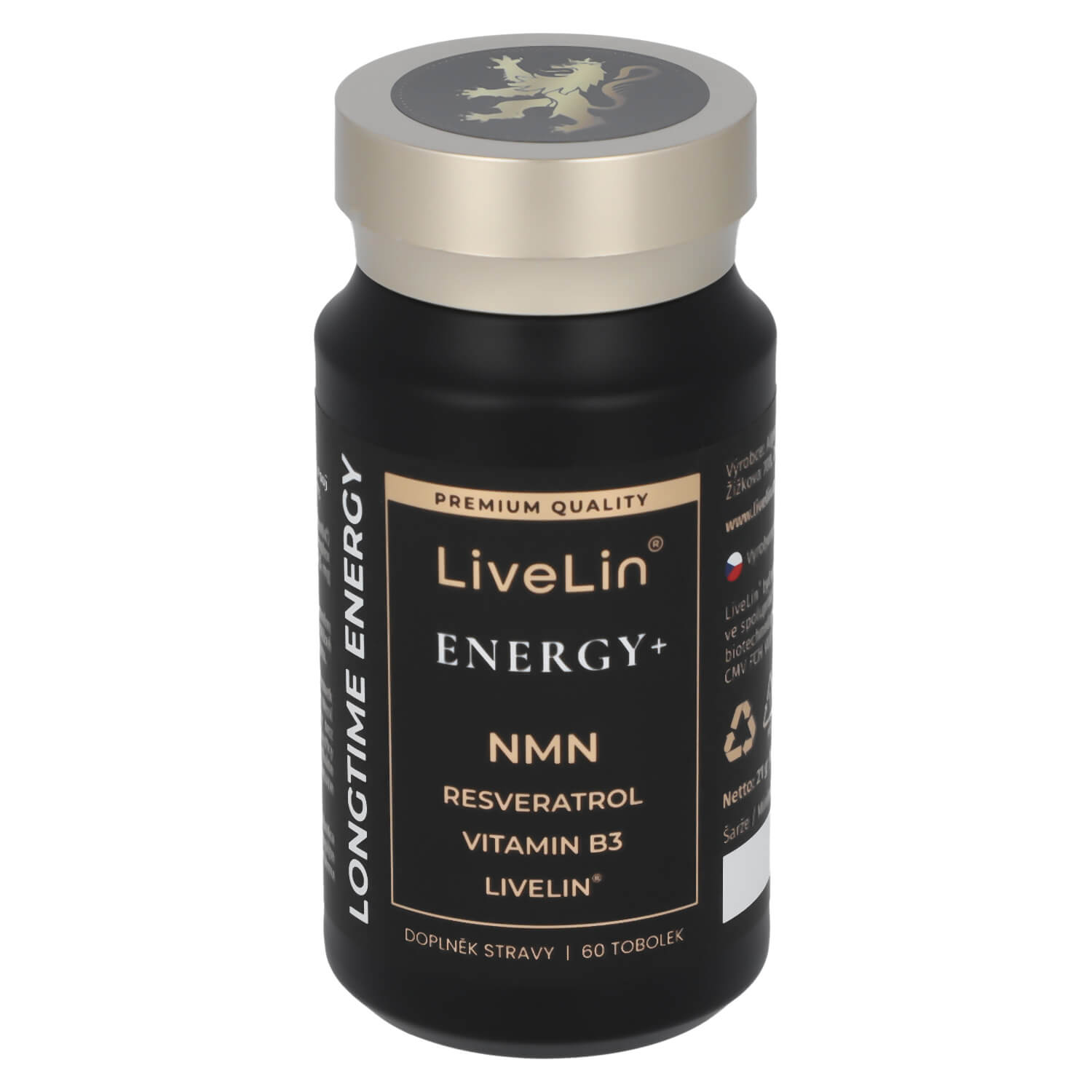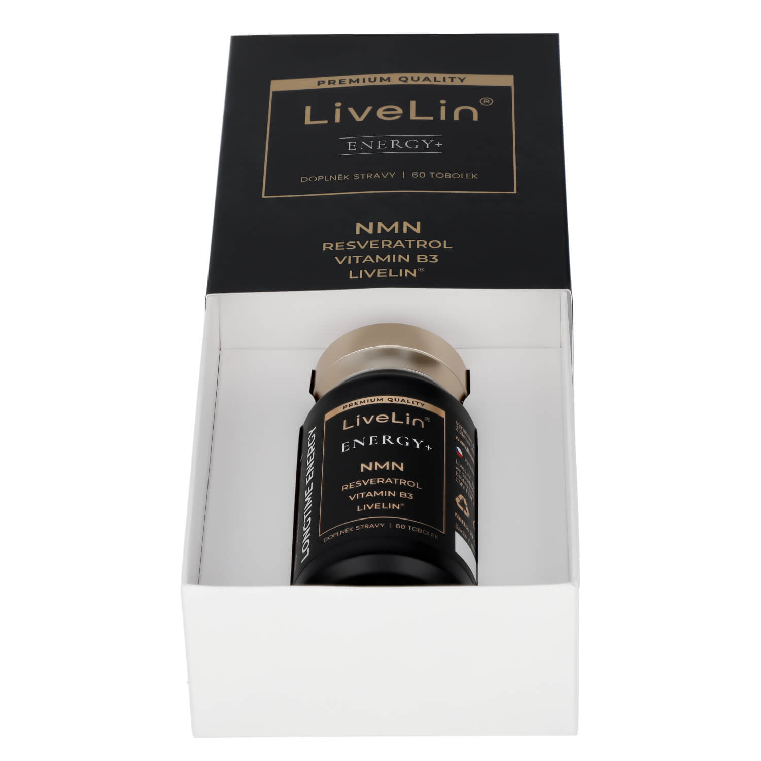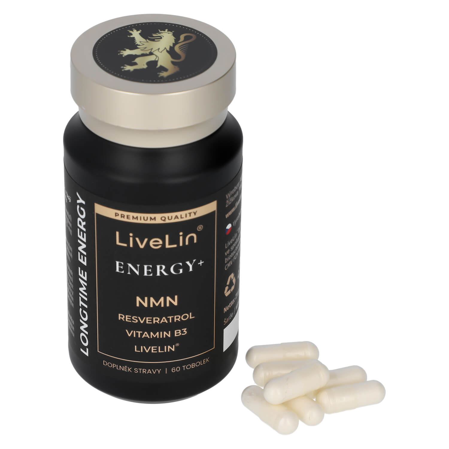 Doplněk stravy LiveLin® Energy+ je čistě přírodní komplex účinných látek podporujících správnou činnost nervového systému, kognitivních funkcí mozku a energetického metabolismu. Obsahuje unikátní mikronizovanou biomasu LiveLin®, vyrobenou biotechnologickým fermentačním procesem, při němž se využívají ušlechtilé mikroorganismy k produkci účinných látek nezbytných pro imunitu a trvalé zdraví. Je uložen v enterosolventní tobolce, která chrání před degradací látek žaludeční kyselinou a zajišťuje vstřebatelnost účinných látek v tenkém střevě. Neobsahuje kofein a jiné stimulanty, přídatné látky, barviva, ochucovadla ani stabilizátory.