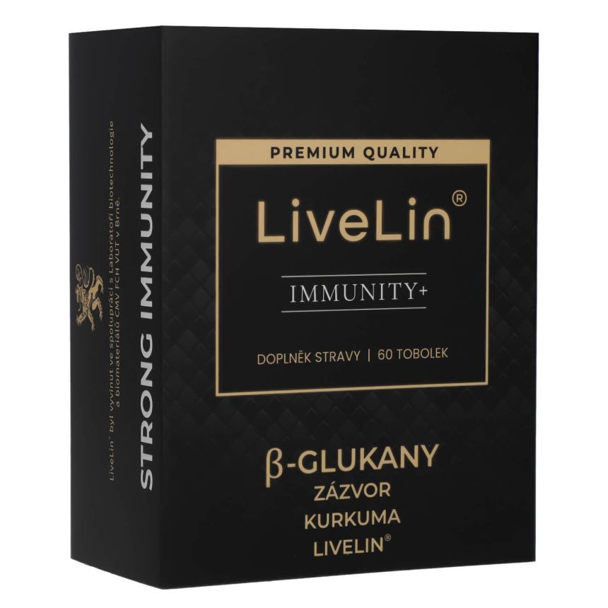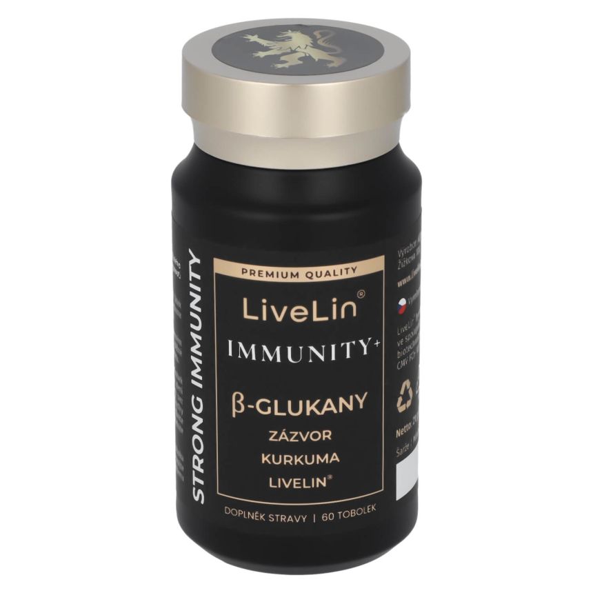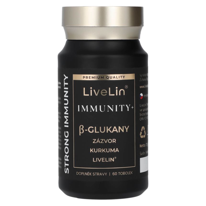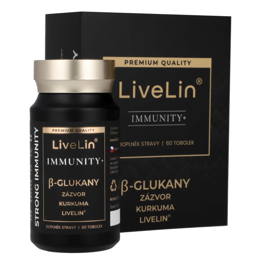 Doplněk stravy LiveLin® Immunity+ je čistě přírodní komplex betaglukanů, extraktu z Kurkumy, Zázvoru lékařského a unikátní mikronizované biomasy, vyrobené biotechnologickým fermentačním procesem, při němž se využívají ušlechtilé mikroorganismy k produkci účinných látek nezbytných pro imunitu a trvalé zdraví. Produkt neobsahuje žádné přídatné látky, barviva, ochucovadla ani stabilizátory.